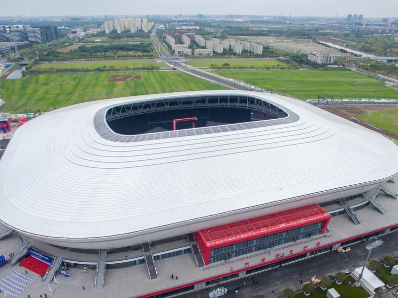 3. המבנה העיקרי מאמצת מערכת מסבך מרחבי או רשת מרחבית רחבה, ויוצרת חלל פתוח נטול עמודות, ומבטיחה נופים ללא הפרעה עבור כל הצופים והיכולת לכסות גג סופר-גדול כדי לעמוד בדרישות השימוש בכל מזג האוויר.