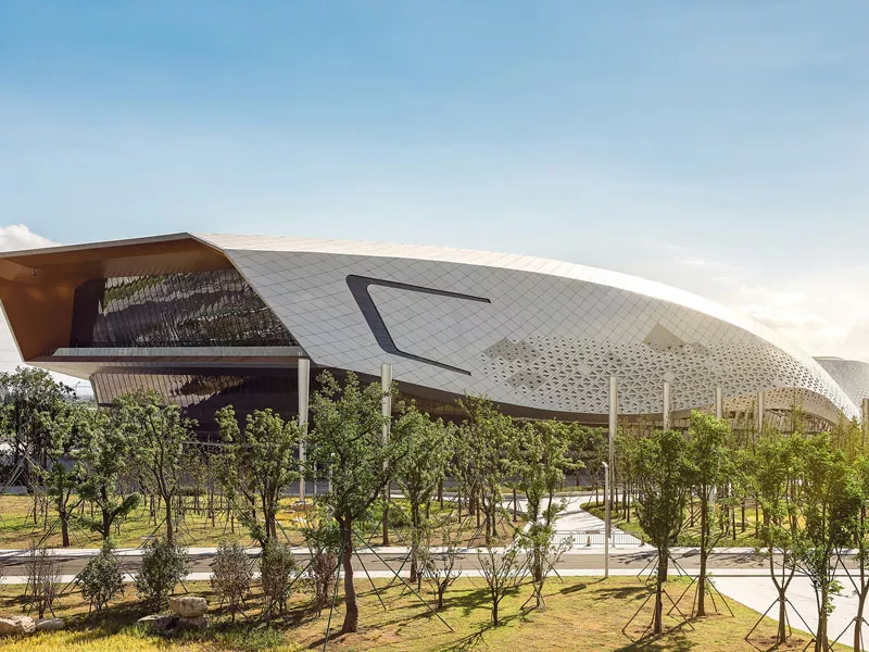 טווח גדול: מתחם מרכז הספורט של מבנה הפלדה הטרומי משיג חללים גמישים רב-פונקציונליים דרך עיצוב נטול עמודות גדול.