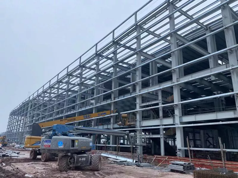 מבנה הפלדה של סדנת מחסן מורכב מעמודים, קורות וקורות קורות המופקים מחומרי פלדה בדרגה גבוהה. רכיבים אלה נועדו לעמוד בעומסים משמעותיים ולספק מסגרת חזקה ויציבה לבניין. מבנה הפלדה מציע גם עמידות מצוינת לקורוזיה ולליה, ומבטיח חיי שירות ארוכים.